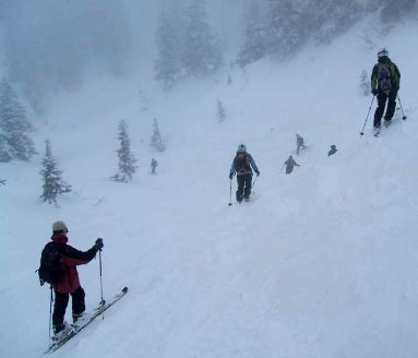 あまり降雪がなく、気温も高めで春スキーのようだった。