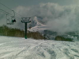 ゲレンデ上部は晴天であった。