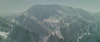 途中、鳥甲山(霞んでいる)を見ながら。