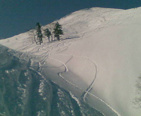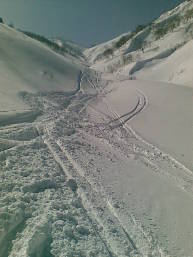 ボードの滑降跡がたくさんついているのでなぞって行く。