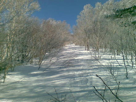 油断すると踏み抜く雪は本当に苦手です。ボーゲンとかステップ系のターンで、だましだまし高度を下げていきます。