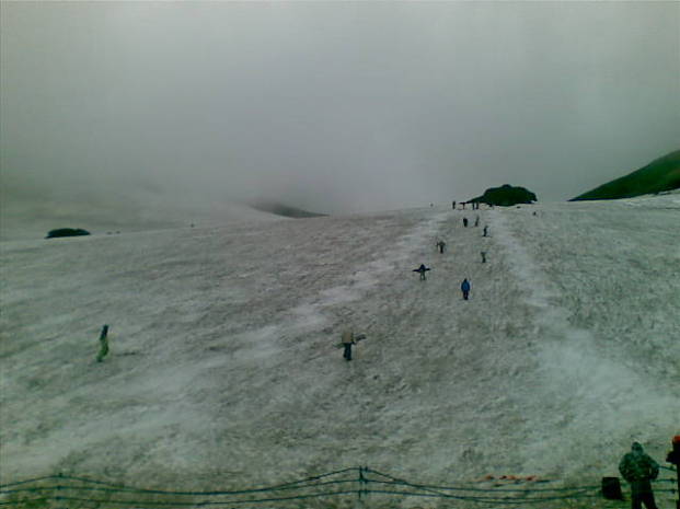 避暑の自転車スキーという目的は果したので、もう寒くてたまらないので逃げ帰る。