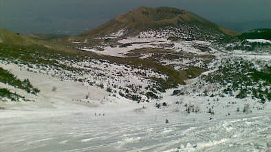 火山に向かって滑る。