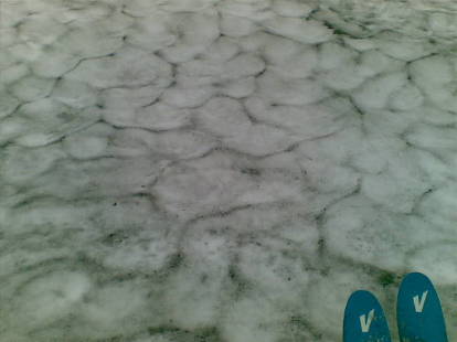 全体的にジャリジャリ。こんなに月山の雪って汚れてたかなあ。