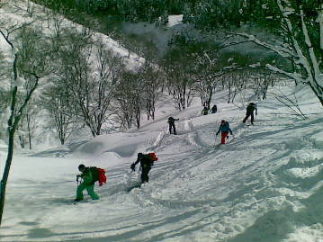 道具もしっかりで上級な足前の人が多いようですが、これだけ人数がいると登りはゆっくりな様子。