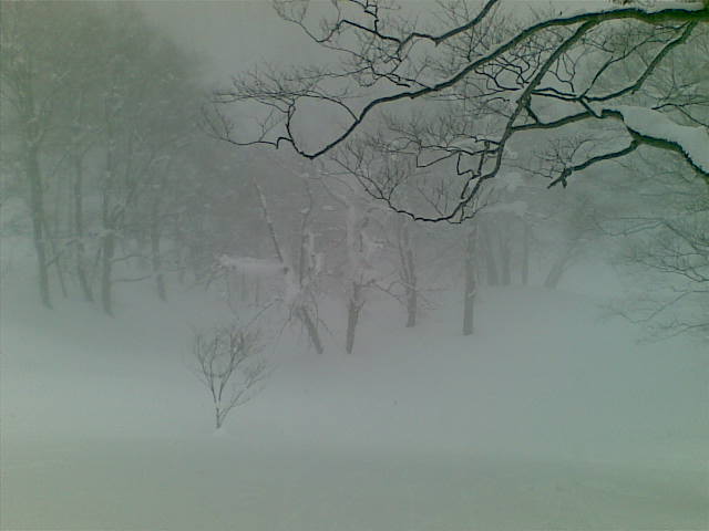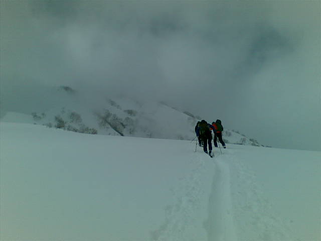 しばらく待つものの晴れる気配はないので滑降に。