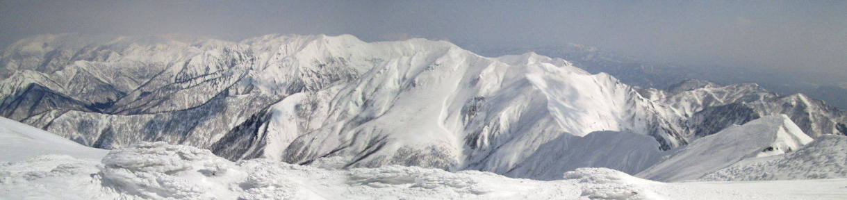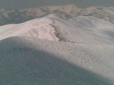 ガチガチでエビの尻尾な稜線にスキーをデポして仙ノ倉に向かいました。