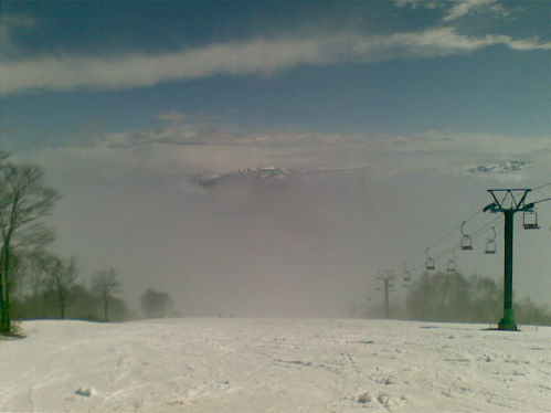 田代ゴンドラから。雪解けは進んでいるがまだOK。