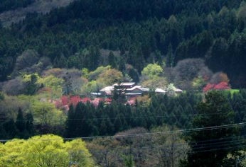 この時期は里山の新緑と桜の類が補色っぽくなっていて良い。