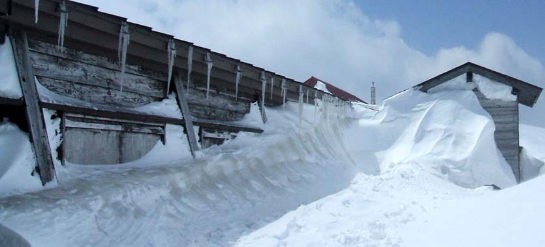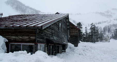 目印の道路は完全に埋まって斜面と同化しているので、雪が降ってしまうとどこに山荘があるのかわかりづらい。