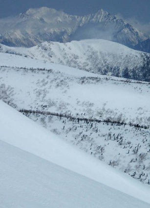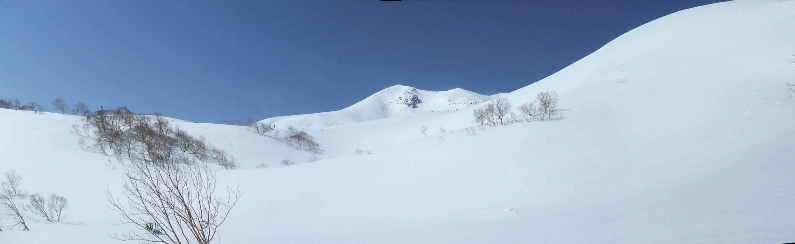 そのまま数時間歩くと森林限界を超え、広大な斜面となる。