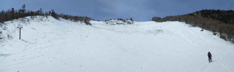雪は沢山あるのだが、スキー場は営業を終了しているので閑散としている。