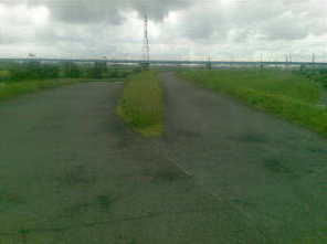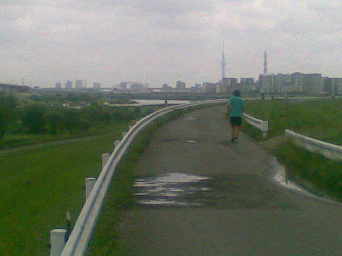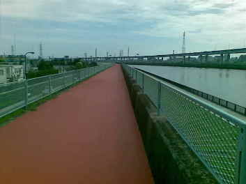 土手の上は完全舗装ではない。足にやさしいフカフカ道もある。