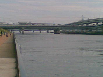 川幅が広いので橋も長い。1キロくらいあるのでは?