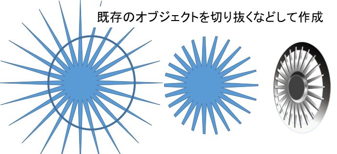 遠近感のあるホイールなどを描くのは大変だが、図形を足したり引いたりしていると様になってくる。