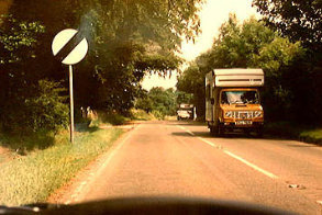 イギリスの道路の制限速度は非常に大雑把で、片側1車線道路なら50マイル、片側2車線以上の道路は80マイルが制限速度となっている。特に標識を設けている場合は標識に従うという単純なルール。上写真の標識から先は、今まで標識によって課せられていた制限速度が解除になるという意味なので、ここから先は50マイル制限という事になる。