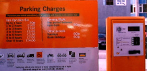 これはパーキングチケットの発券機です。前金でお金を入れてチケットを車のウインドウの中に貼ります。曜日、時間によって料金が違います。夜や休日はタダになるところも多いようです。金曜の晩など、駐車場の空きを待っていると現地の浮かれた若者がクルマで出ていく時ににまだ使えるチケットをくれたりします。