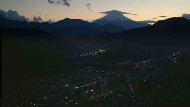 街の灯が明るくなるころに富士山は雲に隠れてしまった。