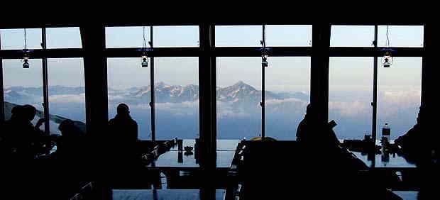 白馬山荘はさすがに巨大。レストランもなんという贅沢な眺め。