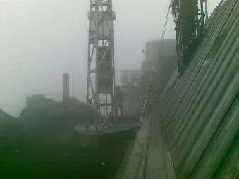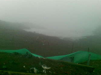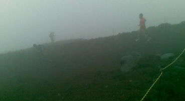 ガスに突入してしばらくすると寒くて大変になるのでカッパを着込む。