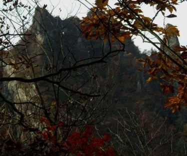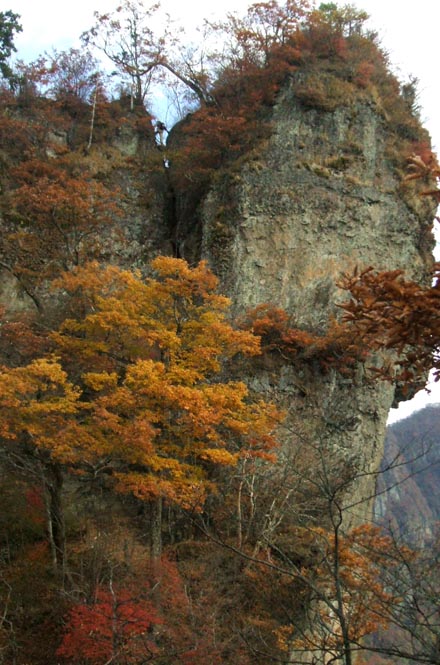 この辺は奇岩の宝庫だが山に小さな穴が開いている様子は神秘的というか奇怪と言うか…。