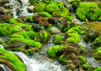 何の事はない、穴地獄という火山性の沢にチャツボミゴケというコケが生えているのです。