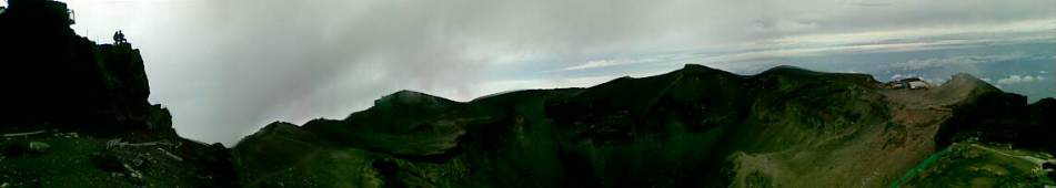 それでも火口壁まで達すると、短いながらも平坦な地面があるので、ここは気分を切り替えて気持ちよく、めったに来ない日本最高高度でジョギングです。