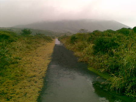 山を縦断して島の対岸に出るか?迷いましたが視界が悪いので引き返します。