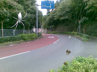 周遊道路はきれいに整備されていますけど、歩道は大きなクモだらけ。