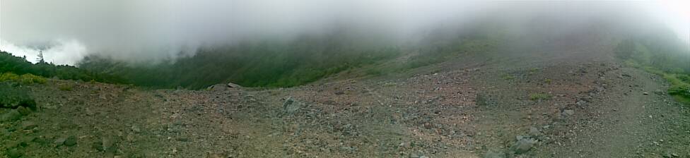 稜線に上がると強風となり、権現岳方面もず〜っとガスであるため、