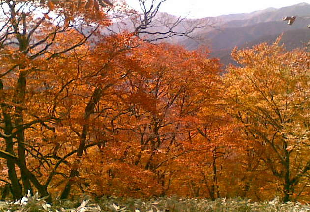 山ビルの巣ではないかと想像していた四万温泉側も見事な紅葉。