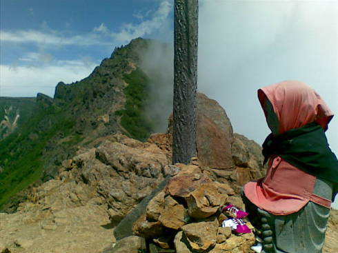 下りは急斜面に細かい砂で滑りやすく、慎重に。