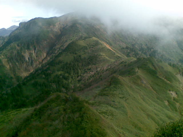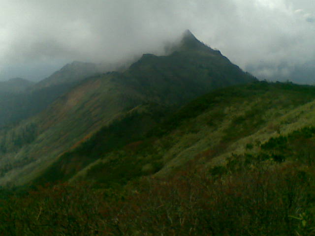 途中の剣ヶ峰。(山頂方面から見た景色)