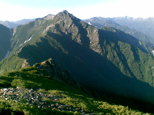 少し歩くと雲が取れた。久々に剱岳を拝む。