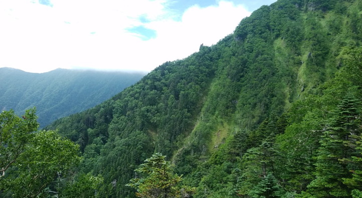下部の登山道、サンメドウズのリフトあたりは笹が茂っていて歩きづらかった。