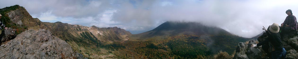 ■感想など ▲黒斑から、浅間山の景観。この向こうはガケで、結構怖いです。 日本100名山の浅間山が立ち入り禁止のため、黒斑山に登ると浅間山に登った事と看做されるという。この屁理屈のおかげで結構人は居る。