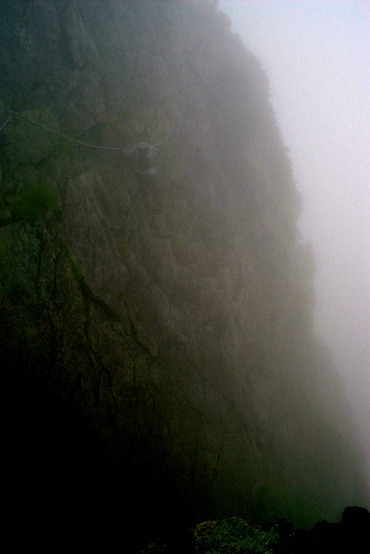 雨こそ止んだが岩場は濡れており滑る。苦労し、ビビリながらも登頂するが展望もなく、また苦労しながら下山した。